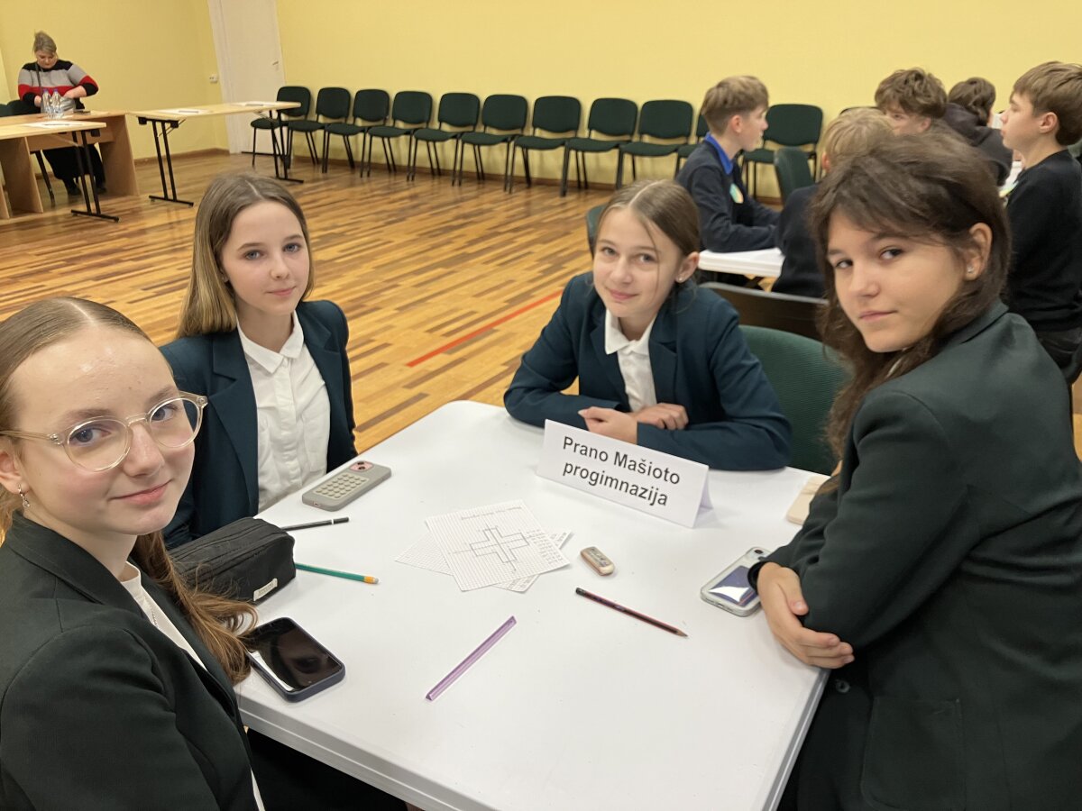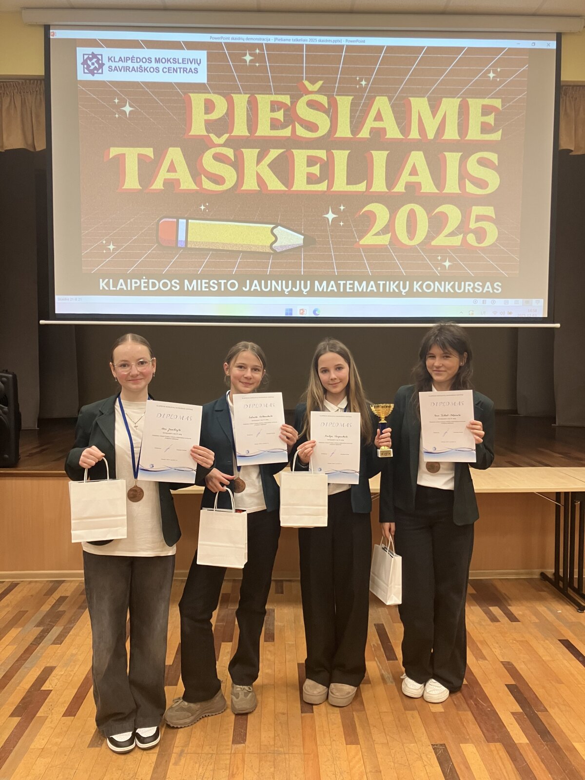 Gruodžio 3d. Klaipėdos moksleivių saviraiškos centre vyko jaunųjų matematikų (6 klasių mokinių) matematikos konkursas „PIEŠIAME TAŠKELIAIS“. Mūsų mokyklos mokinių komandai atstovavo Unė (6a), Amelija (6b), Gabriele (6c) ir Ema (6c). Mergaitės iš 12 komandų iškovojo III vietą.  Sveikiname komandą!