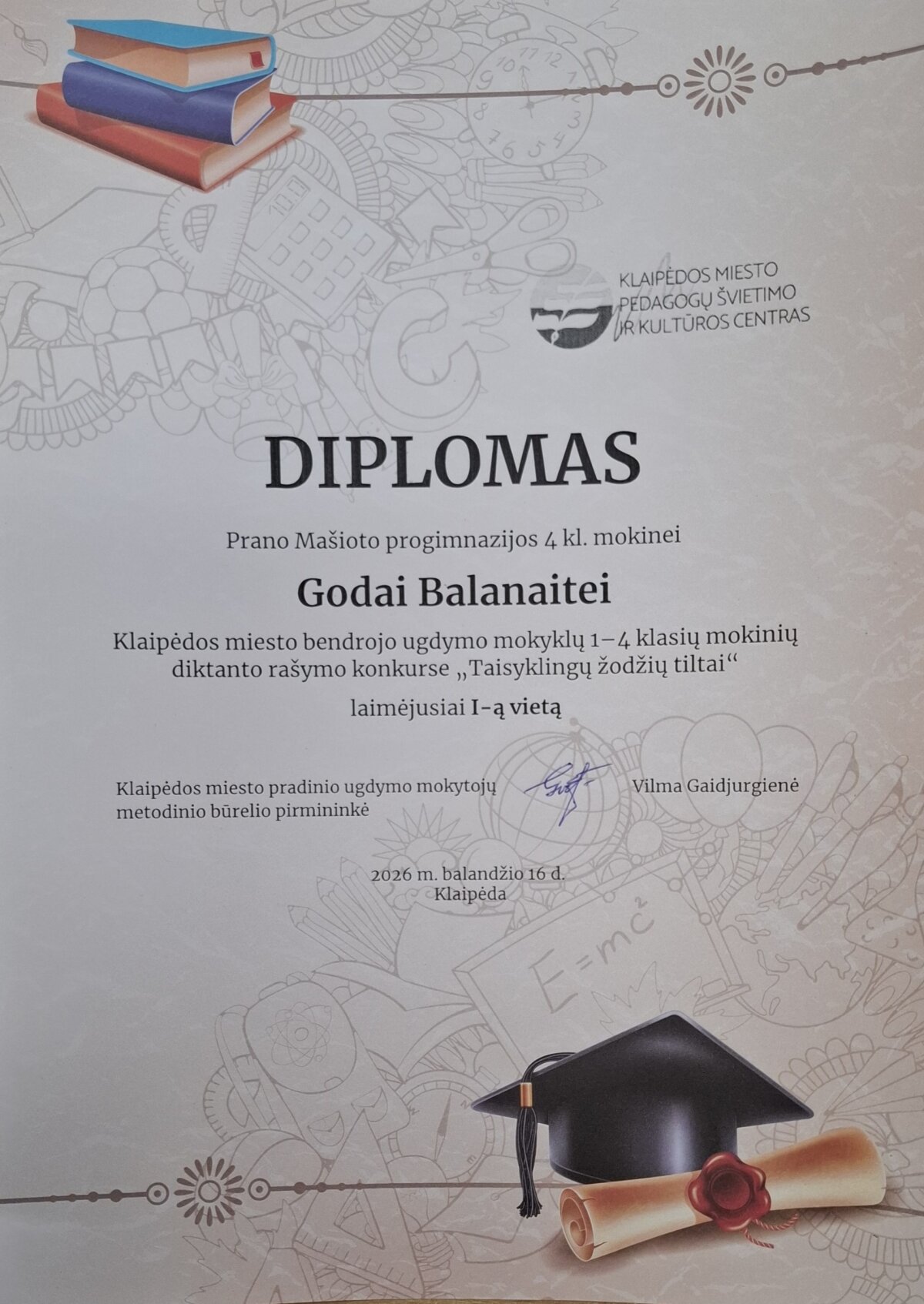 Džiugi žinia – šiame konkurse Goda užėmė I-ąją vietą! Nuoširdžiai didžiuojamės ir džiaugiamės kartu su ja.