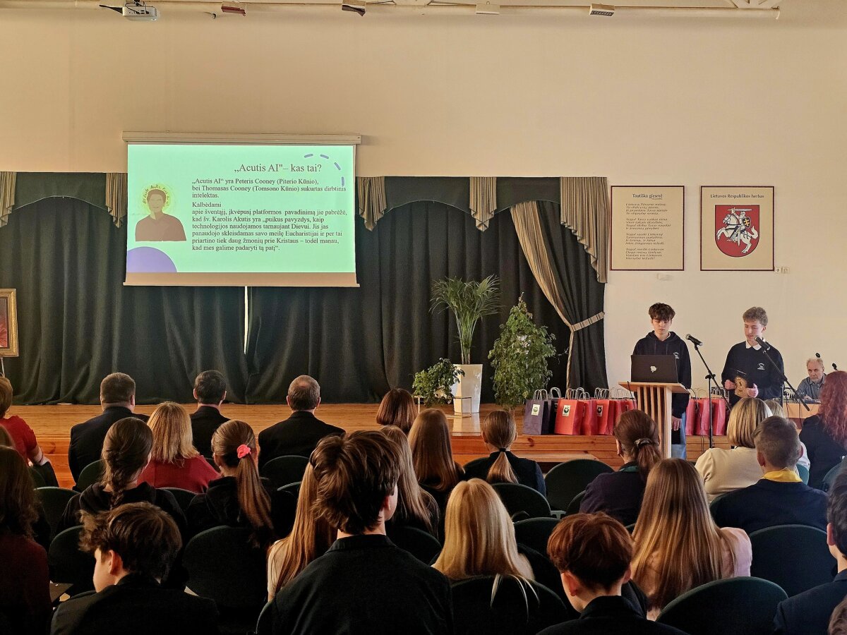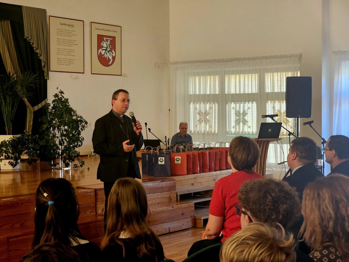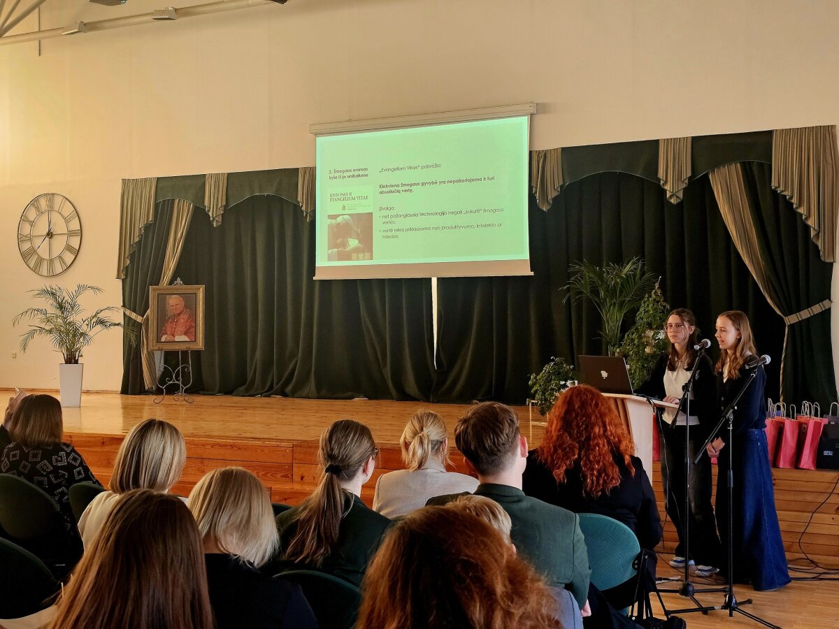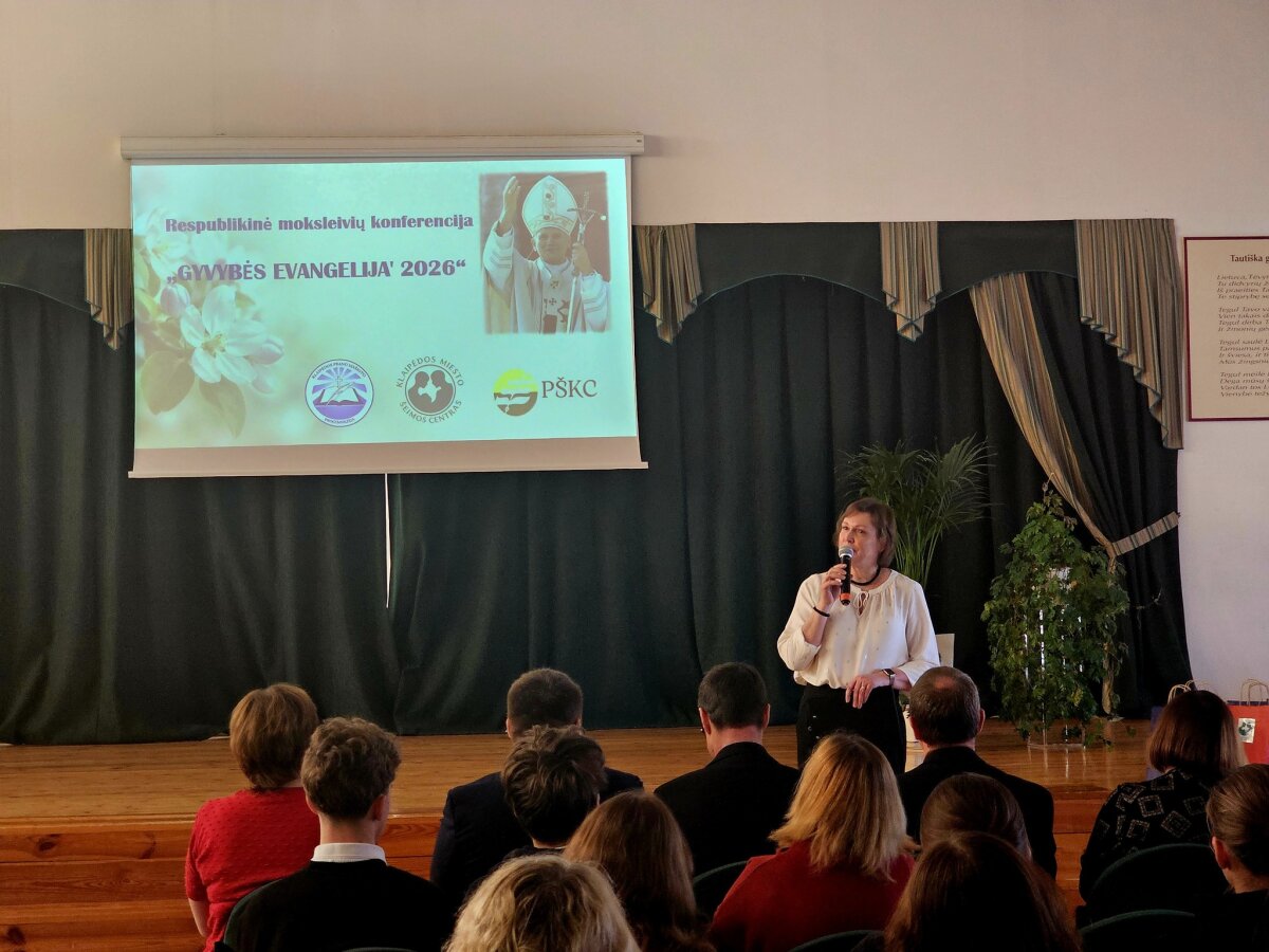 Jau šeštąjį kartą mūsų mokykloje nuaidėjo respublikinė moksleivių konferencija „Gyvybės Evangelija 2026“, skirta paminėti pasaulinę Gyvybės dieną ir šv.Jono Pauliaus II enciklikos Evangelium Vitae mokymo aktualumą šiandien. Šiemet konferencijoje svariais pranešimais dalijosi moksleiviai ne tik iš Klaipėdos, bet ir iš Plungės, Švėkšnos bei Alytaus gimnazijų ir progimnazijų. Konferencijos dalyvius ir klausytojus pradžiugino garbingi svečiai: Telšių vyskupas Algirdas Jurevičius, Lietuvos katalikiškojo ugdymo asociacijos pirmininkė Giedrė Statkutė, Klaipėdos miesto Šeimos centro direktorius kun. Andrius Vaitkevičius, mokyklos administracija ir kapelionas kun. Antanas Budreckas. Dėkojame visiems dalyviams bei konferencijos rengėjams. Tegul šioje konferencijoje sėjama Gyvybės Evangelijos sėkla dygsta ir sklinda kuo plačiau!