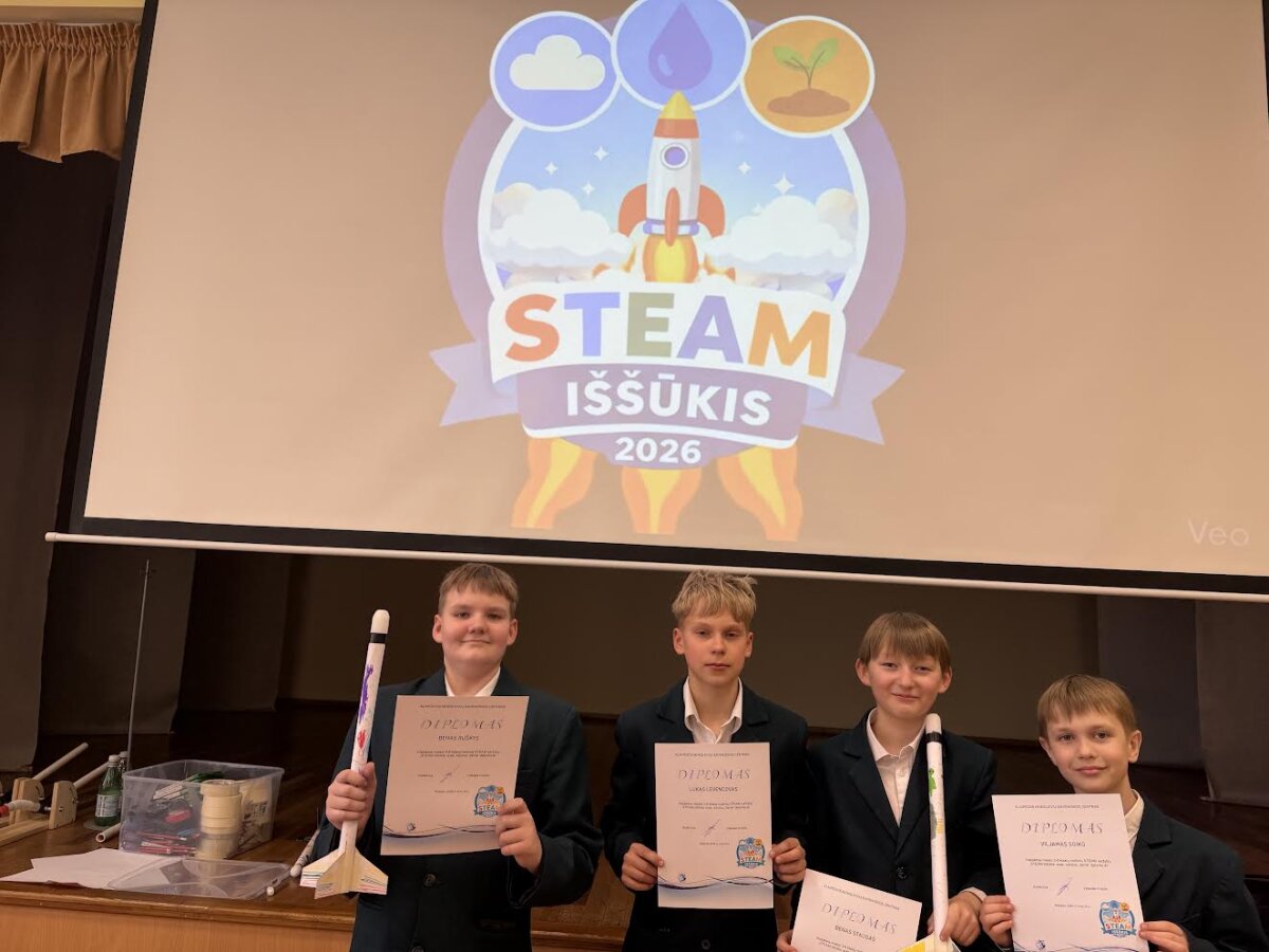 5a kl. Lukas L., Benas R., ir 5b kl. Benas S. ir Viljamas S., Klaipėdos moksleivių saviraiškos centre dalyvavo STEAM varžybose. Mokinių laukė įdomus ir kūrybiškas iššūkis – dalyvavimas techninių modelių varžybose. Kiekvienas dalyvis gavo specialiai varžyboms paruoštą modelio ruošinį, kurį turėjo savarankiškai surinkti, kruopščiai sureguliuoti ir išbandyti treniruotės metu. Tai buvo puiki galimybė ne tik pritaikyti teorines žinias praktikoje, bet ir ugdyti problemų sprendimo bei kūrybiškumo įgūdžius. Intrigos suteikė tai, kad konstruojamo modelio tipas ir schema buvo atskleisti tik varžybų metu. Penktokai turėjo greitai orientuotis, priimti sprendimus ir dirbti tiksliai bei atsakingai. Mokiniai grįžo laimingi ir pilni įspūdžių.