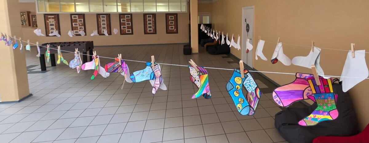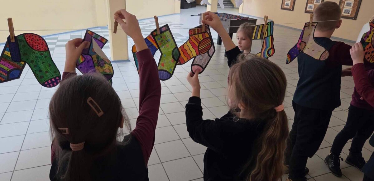 Kovo 20 d. mokyklos bendruomenė prisijungė prie respublikinės akcijos „Bendrystės strėlė“, skirtos Pasaulinei Dauno sindromo dienai paminėti. Spalvingos, individualiai ištapytos kojinės tapo ne tik vizualiu akcentu, bet ir vieša solidarumo išraiška. Ant skalbinių virvių susegti kūrybiniai darbai įprasmino skirtingumų priėmimą ir bendruomenės vienybę. 1c klasės mokinukai ne tik piešė, bet ir atkeliavo į mokyklą skirtingomis kojinėmis. Peržiūrėtos vaizdo medžiagos aptarimas ir diskusijos skatino mokinių savivertę bei empatiją kitoniškumui. Iniciatyva ne tik atskleidė mokinių meninę saviraišką, bet ir praktiškai stiprino įtraukiojo ugdymo nuostatas. Ačiū šauniesiems 1a, 1c, 2a, 2b, 2c, 3a, 4a, 4b, 4c mokinukams ir jų mokytojoms. Jūsų susitelkimas ir kūrybinė energija suteikė šiai akcijai ypatingą prasmę.