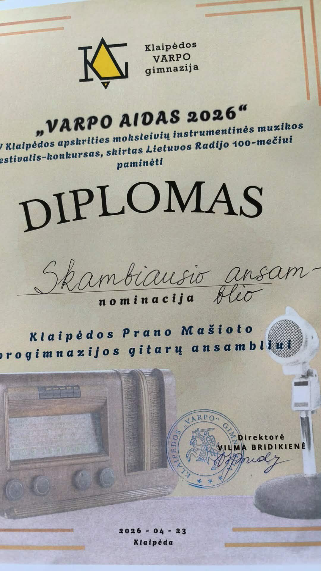 Balandžio 23 dieną Prano Mašioto gitarų ansamblis dalyvavo instrumentinės muzikos festivalyje ,,Varpo aidas“.